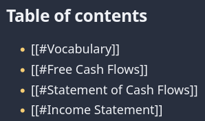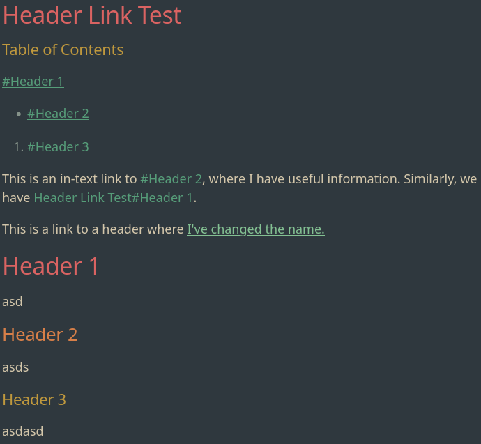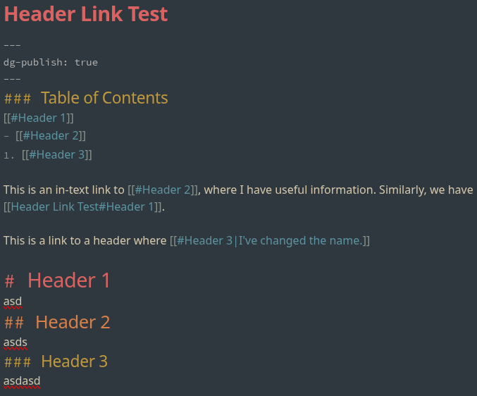 By default, header links (like [[#header]]) don’t render in Digital Gardens. They’re often used in DIY Table of Contents, and are much faster than typing out the whole file name every time you want to reference a specific header.