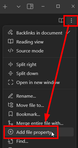 - Select the three-dot menu at the top-left of your note, and click “Add file property…”