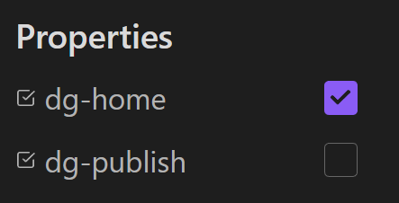 - DG Plugin settings are managed in Obsidian>Settings>Digital Garden.