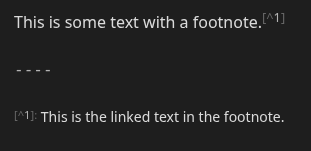 Footnotes should use the following formatting as the link, and then as the linked text Link: [^(1, 2, 3, etc.)] Linked text: [^(1, 2, 3, etc.)]: Linked text